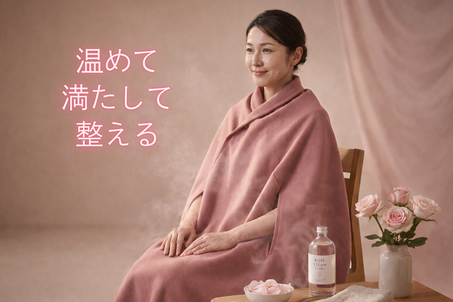 ロゼ・スチームは、最高級のローズウォーターと高機能成分「ローズリペアプラセンタ」を使用した、新しい温活メソッドです。